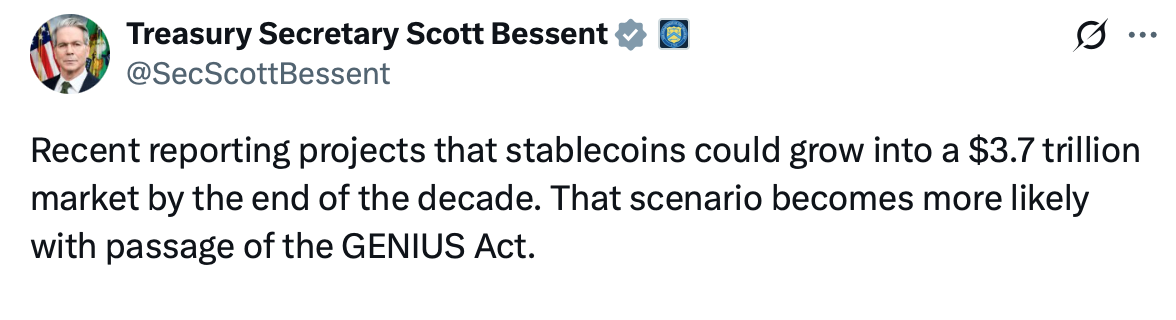 Treasury Secretary Scott Bessent says stablecoins will grow…