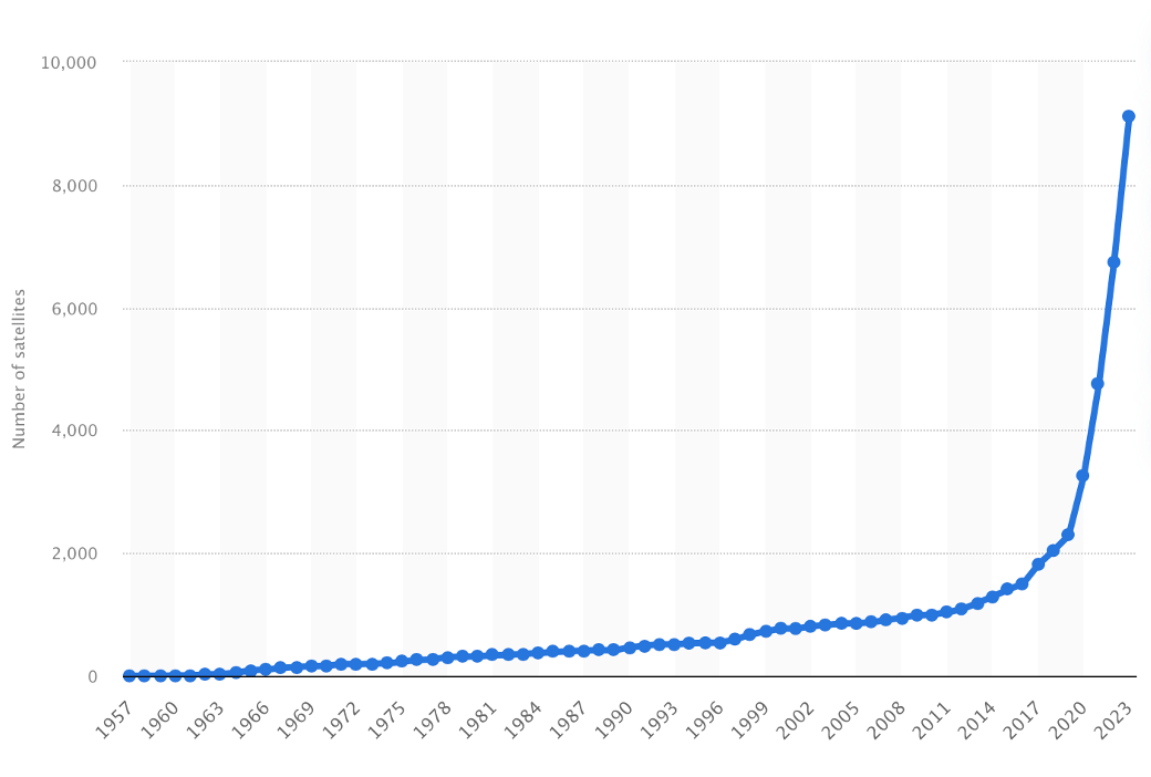 That’s the explosive growth of satellites in orbit.