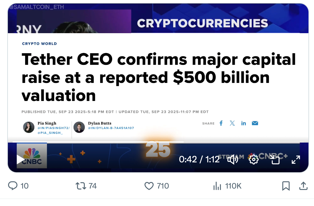 Tether’s CEO says the company itself is raising capital from investors. And the deal values the company at $500 billion.