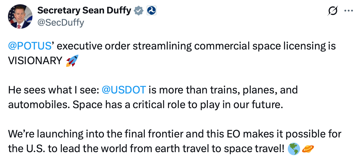 The Executive Order aims to increase commercial rocket launches in the U.S. by reducing regulation and red tape.